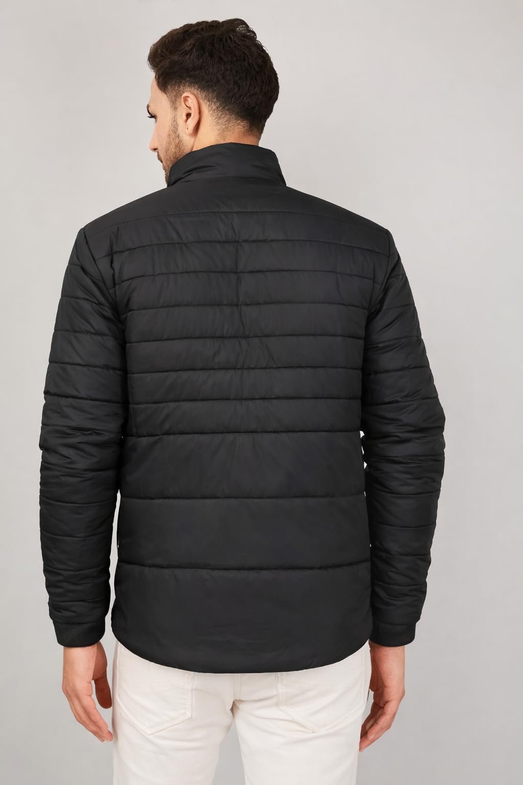 Made with a quilted insulated construction, this men’s winter jacket helps retain body heat while allowing natural movement and breathability. The stand collar design provides added protection from cold winds, while the full front zip closure ensures easy wear and adjustable comfort throughout the day.