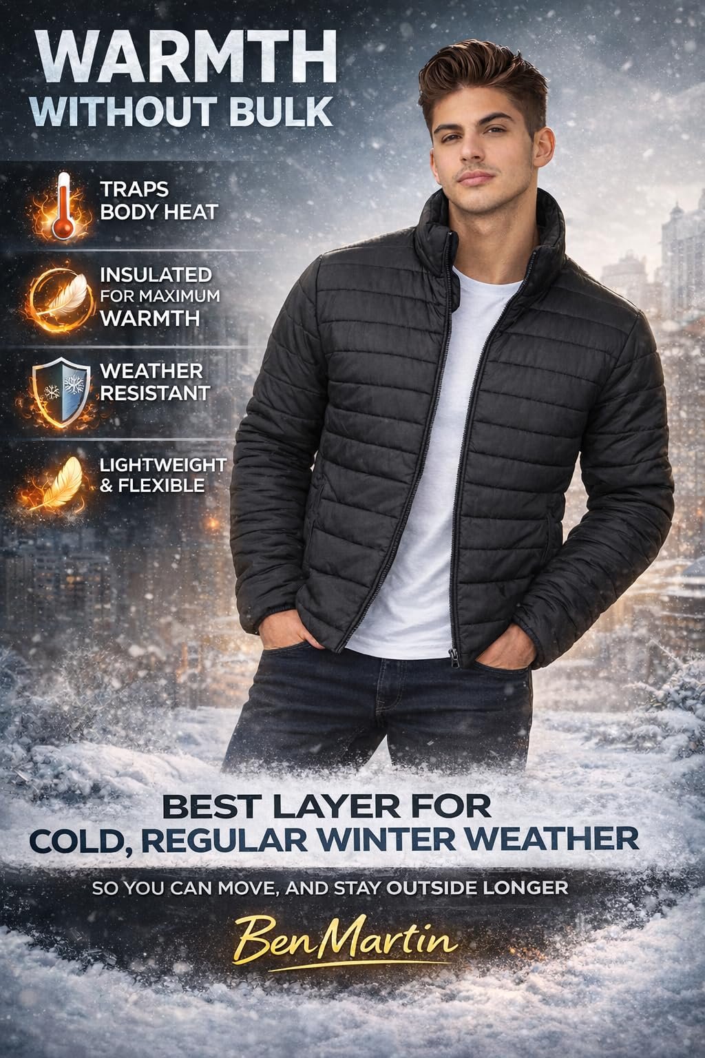 Stay warm and comfortable this winter with the Ben Martin Men’s Quilted Winter Jacket, designed for everyday wear and modern lifestyles. This lightweight puffer jacket for men offers dependable warmth without extra bulk, making it ideal for daily use, office commute, travel, and casual outings.