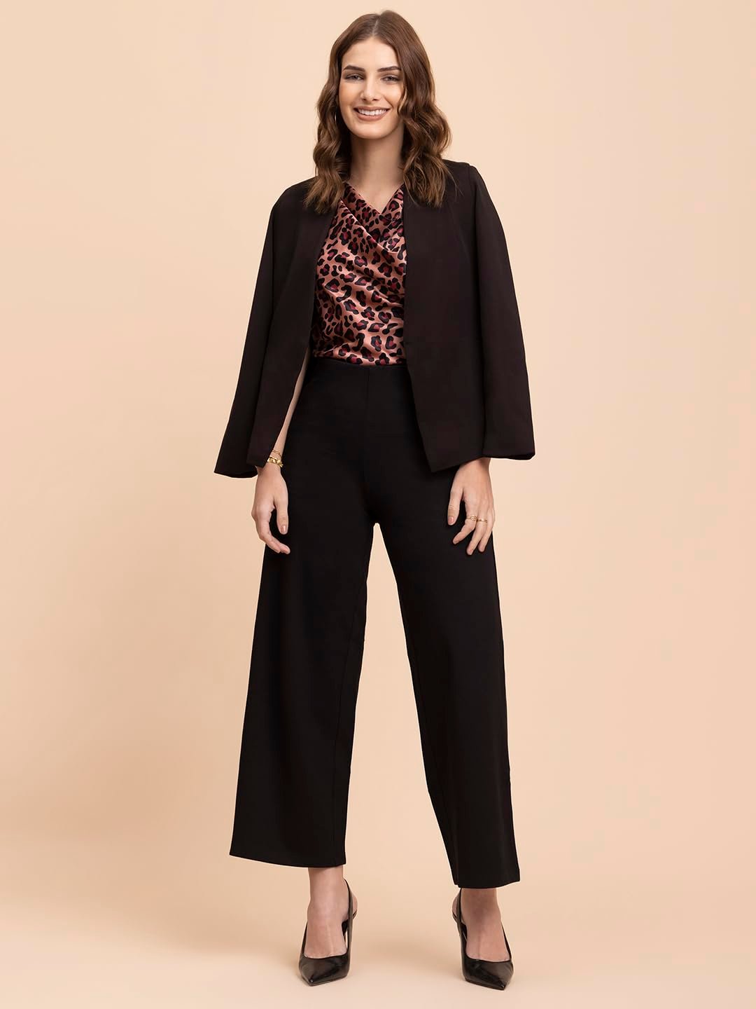 - STYLE SUGGESTION: Pair this top with tailored trousers or a pencil skirt for a refined look. Add statement earrings and a clutch for evening events, or layer with a blazer for a chic office-ready ensemble. Complete the outfit with strappy heels or classic pumps.