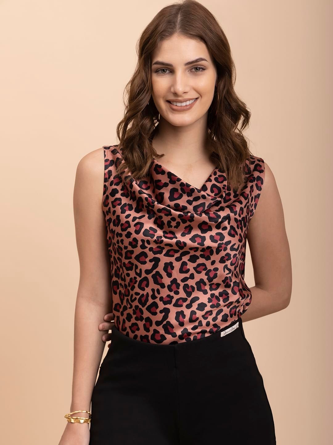 - PRODUCT DESCRIPTION: Crafted in a luminous Bright Pink satin, this sleeveless top features a chic cowl neck and a solid pattern. Its shiny finish and plain back design make it a standout choice for evening parties or formal occasions, offering a sophisticated yet modern aesthetic.
