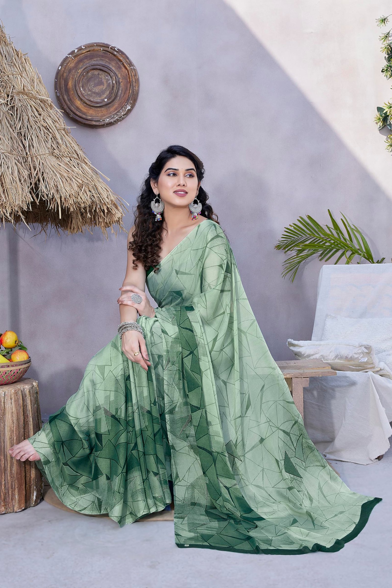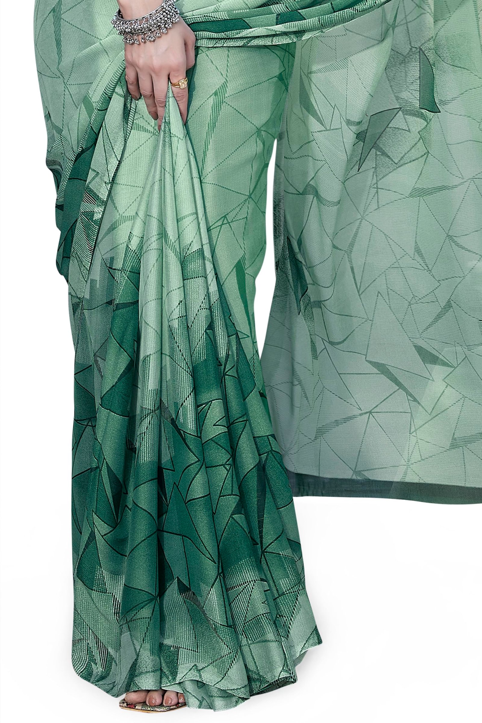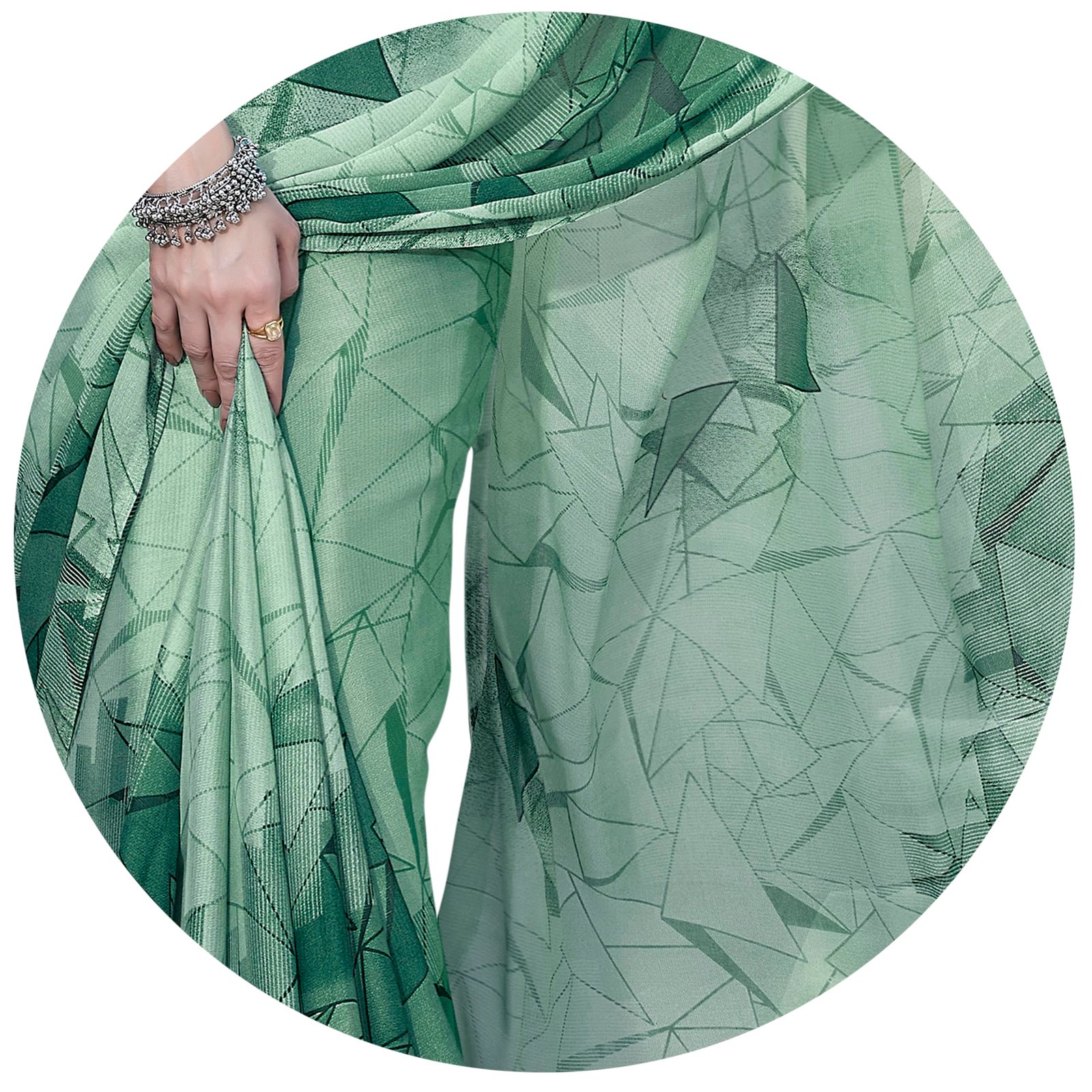 - Color :: Saree – Light Dusty Green, Green | Blouse – Green