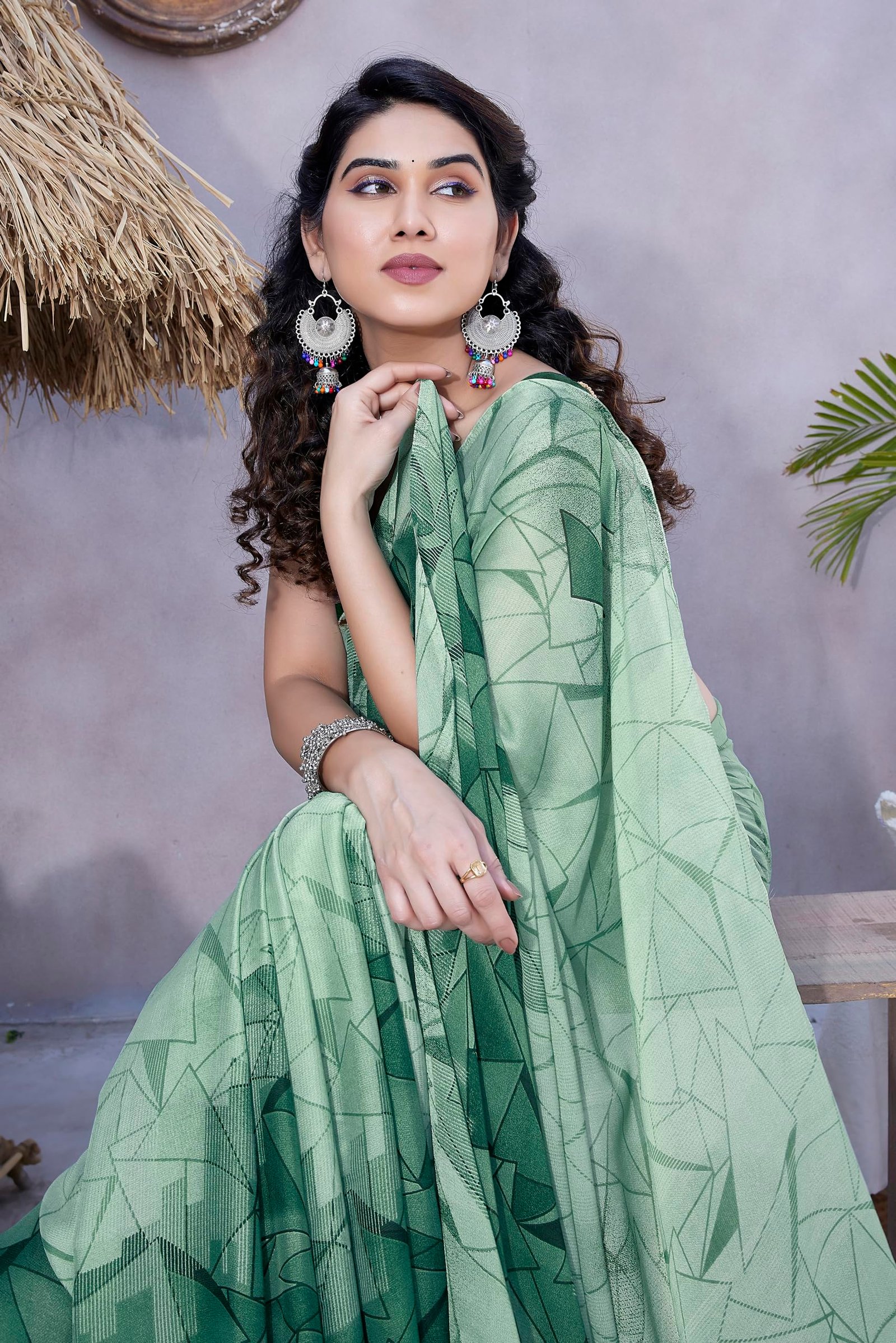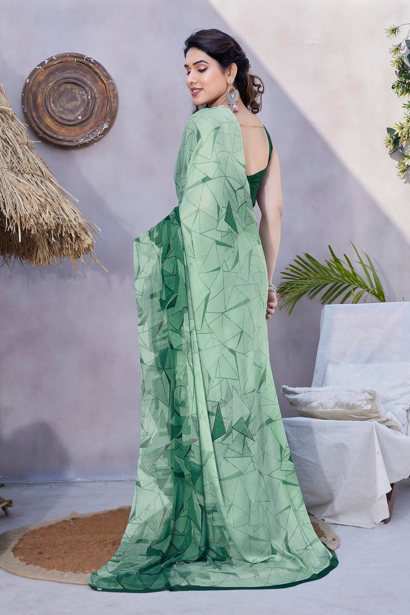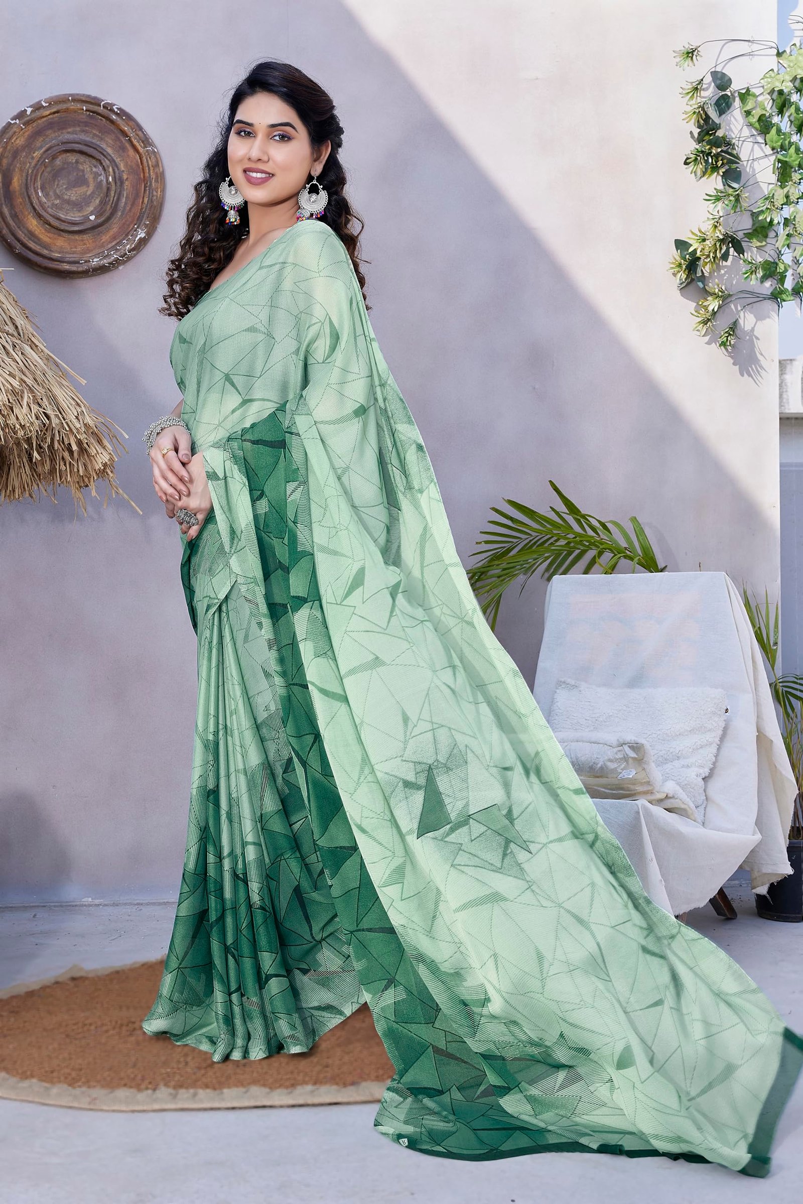 - Color :: Saree – Light Dusty Green, Green | Blouse – Green