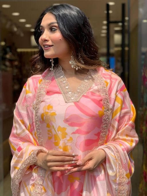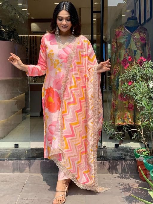 SHIENZY Women’s Kurta & Pant with Dupatta || Straight Kurta Outfits || Ethnic Set (1501SHZ_PNK_L)