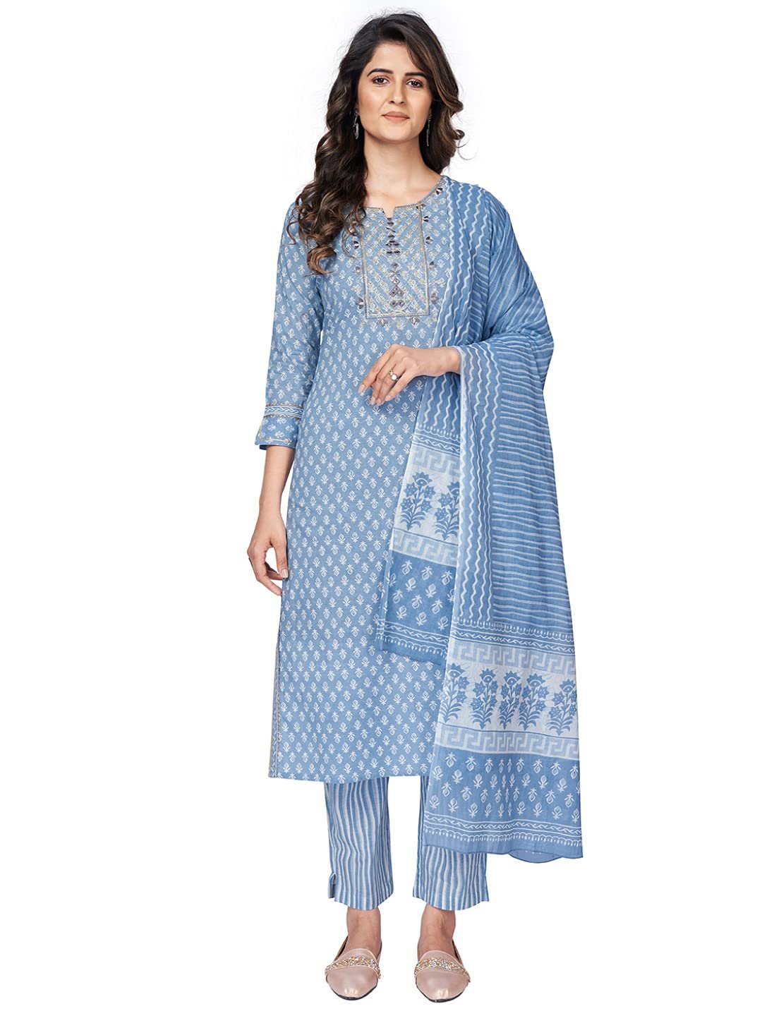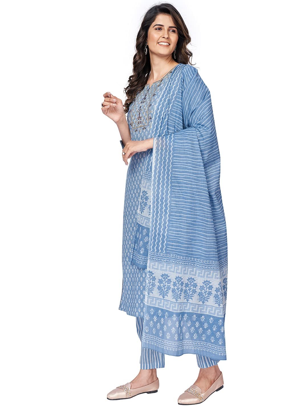 - Complete Set: This set includes a straight-cut kurta, matching pants, and a dupatta, offering a complete and coordinated look that’s ideal for festive events and casual outings.