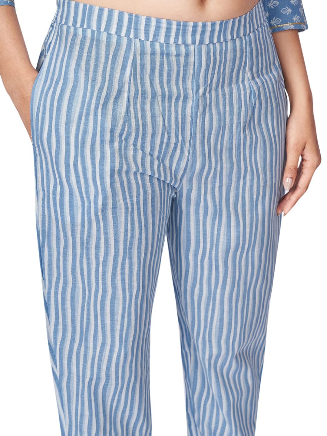 - Elegant Design: The sky blue kurta features a beautiful combination of print and intricate embroidery, adding a touch of sophistication to your ethnic wardrobe. The round neck and 3/4 sleeves with a sleeve length of 17 inches provide a modern and chic look.
